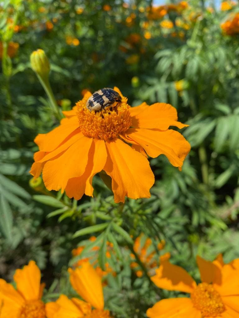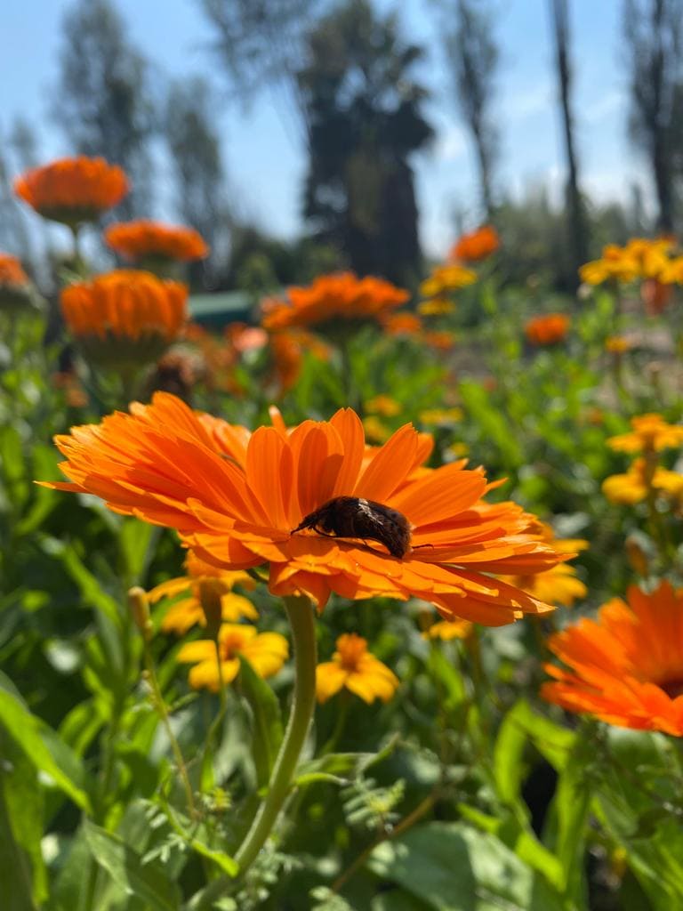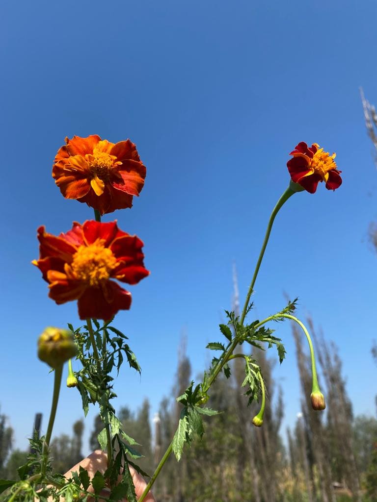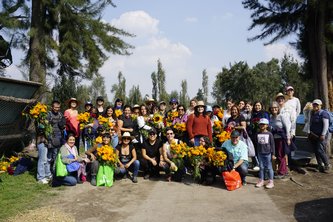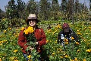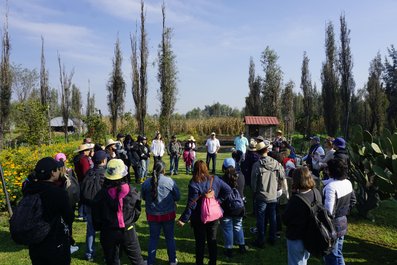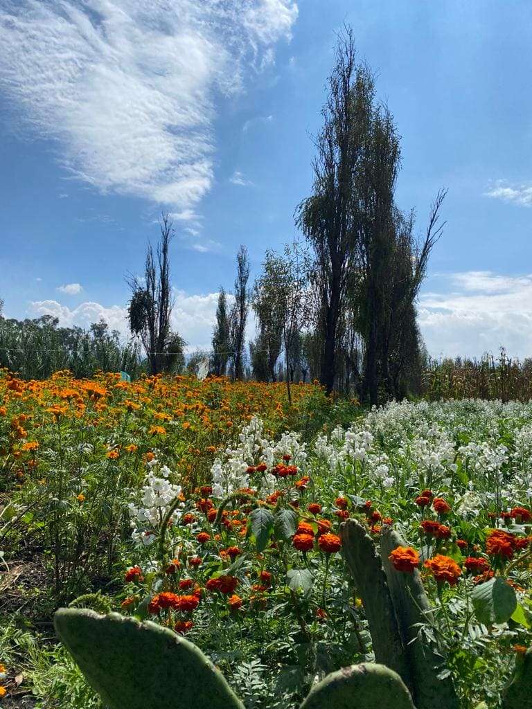 Recorrido y explicación de la siembra de cempasúchil y flor siempreviva.