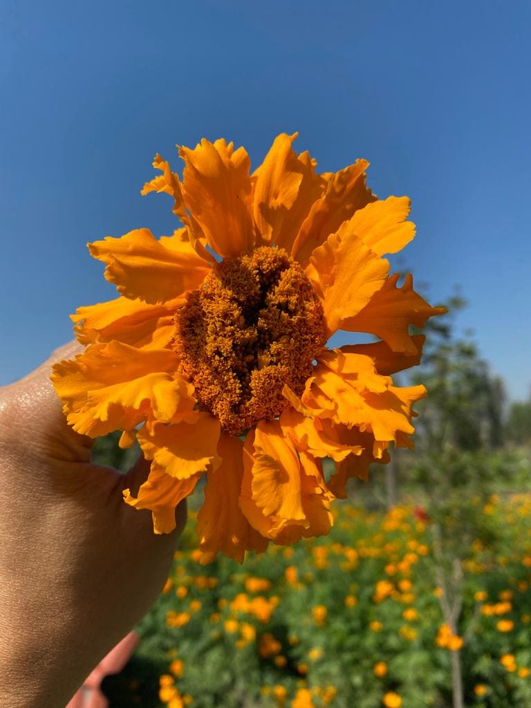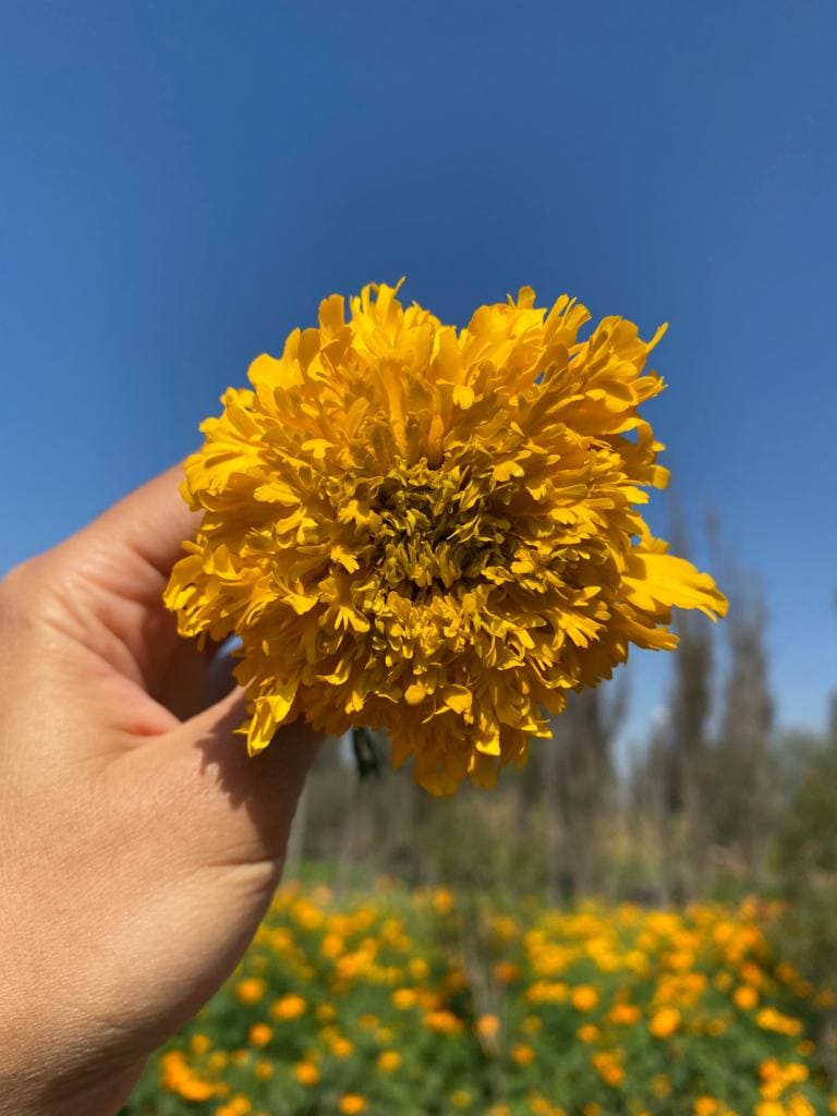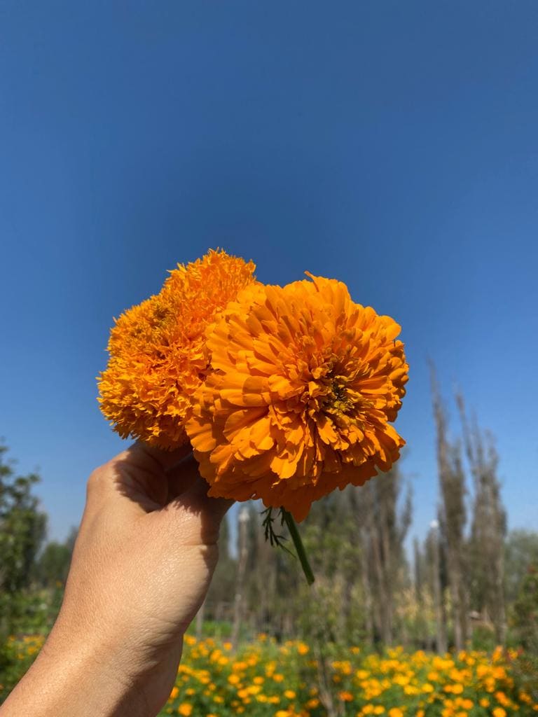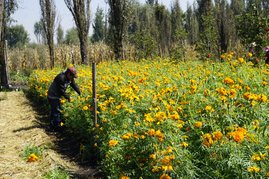 Corte de ramo de cempasúchil.
