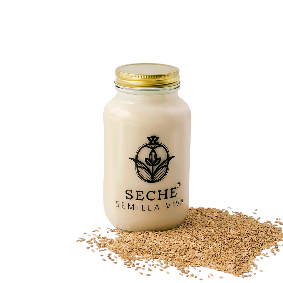 Bebida artesanal de ajonjolí, elaborada con semillas activadas y especias naturales, en envases de vidrio reutilizables. Un alimento puro, sin aditivos, diseñado para nutrir tu cuerpo de forma consciente y sostenible.